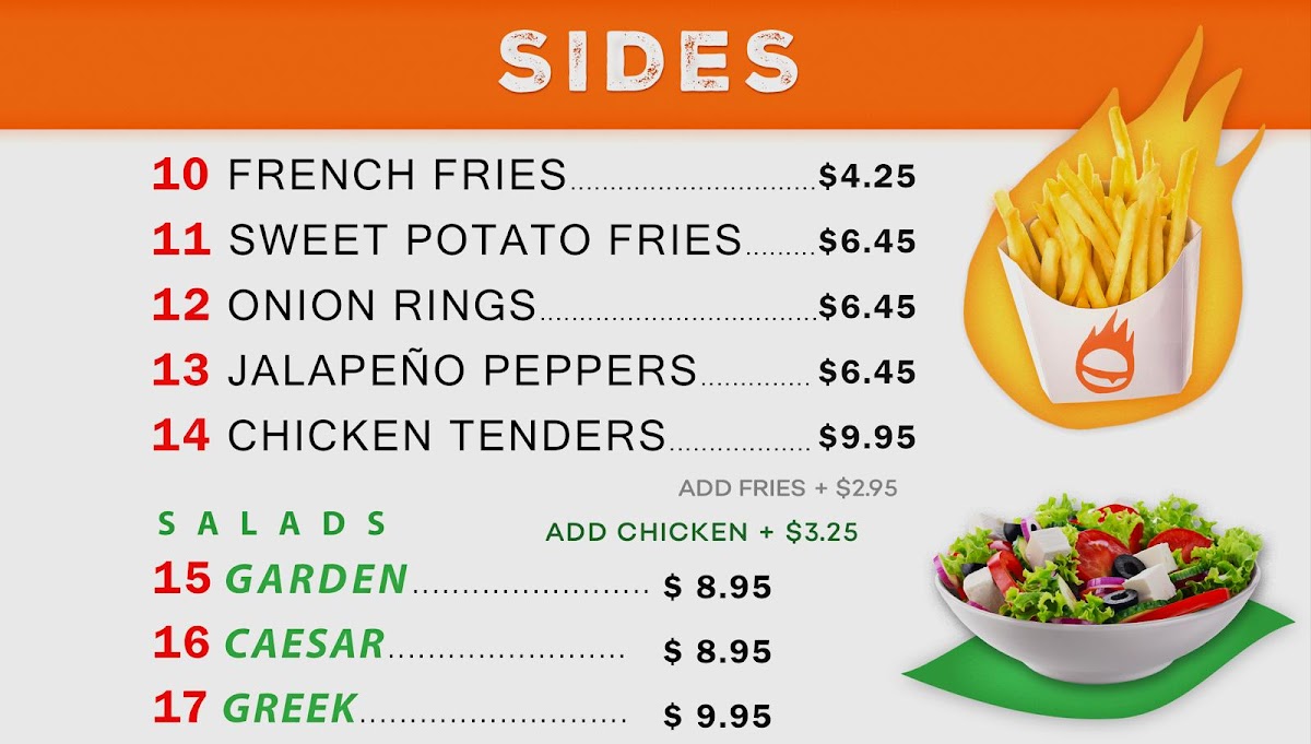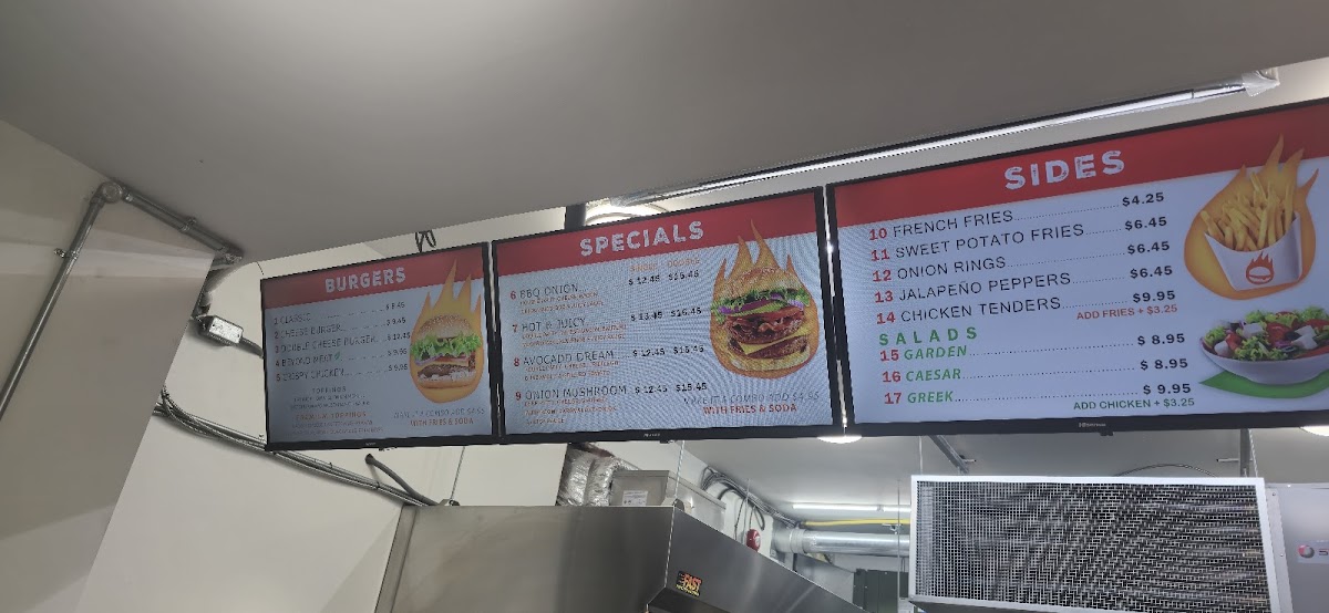 - Salads: The salad offerings include Garden, Caesar, and Greek salads. These provide lighter options to accompany or substitute burger meals.