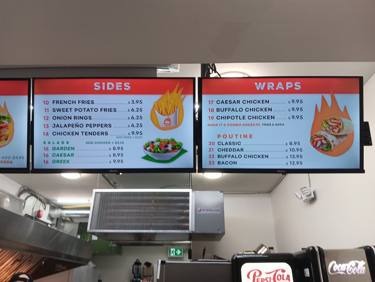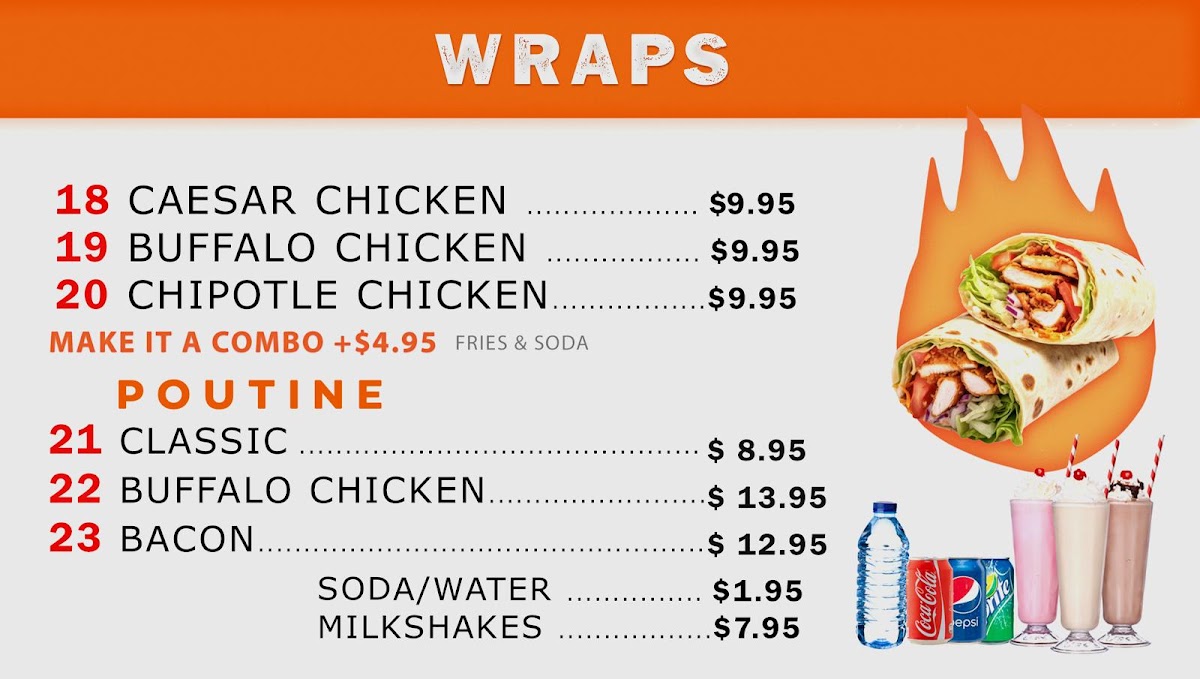 - Wraps: Various chicken wraps are offered, including Caesar Chicken, Buffalo Chicken, and Chipotle Chicken wraps, offering handheld meal options with different flavor profiles.