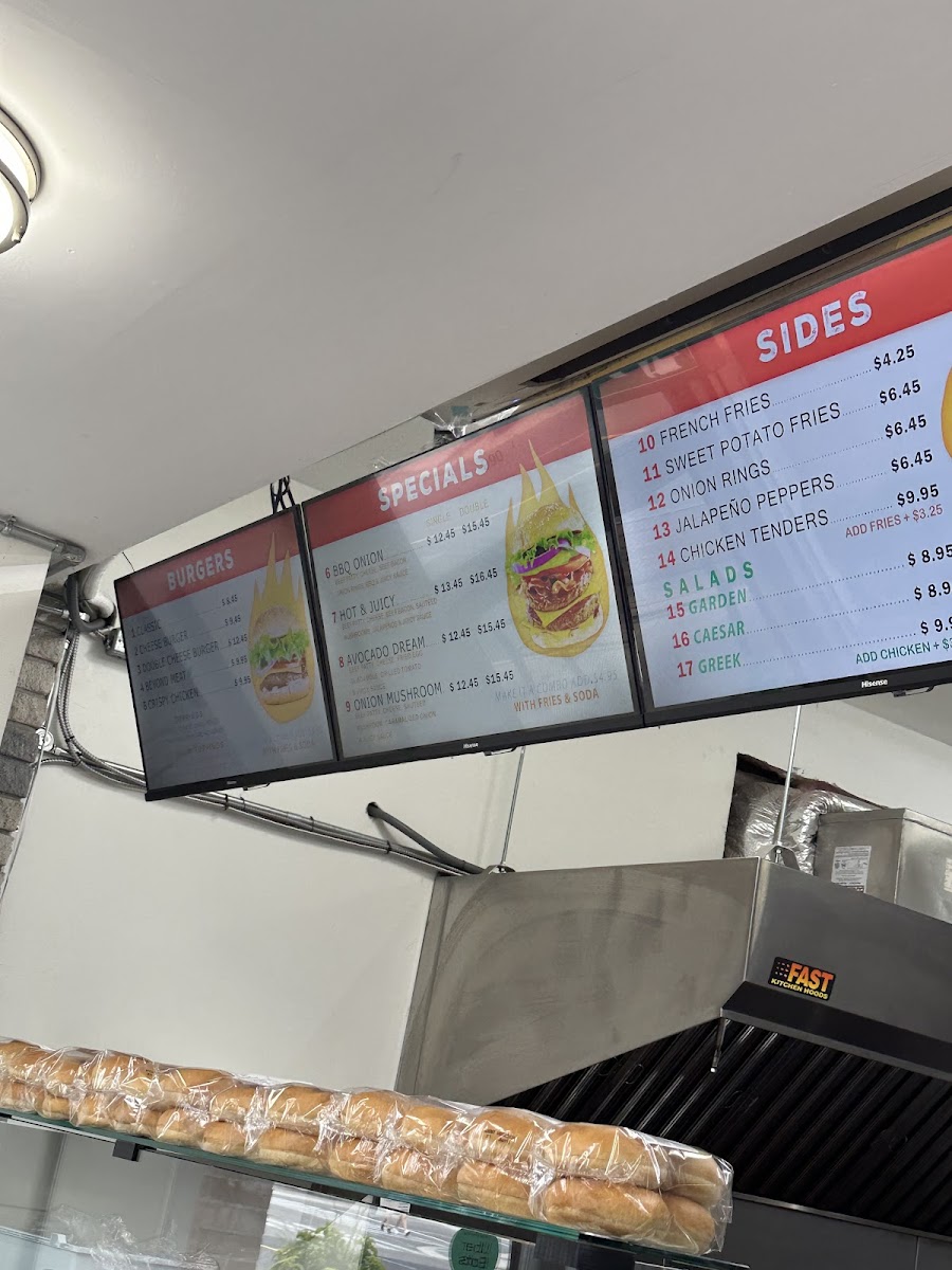 The menu items are available throughout the day, making them suitable for lunch, dinner, or casual snacking. The structure supports quick order processing as well as takeout options, catering to customers seeking fast service and straightforward meal choices.